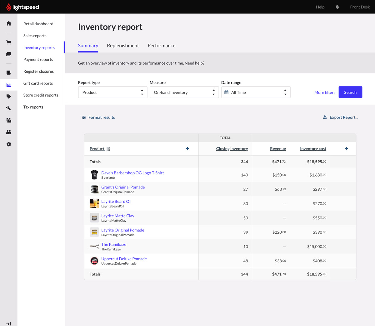 Manage your inventory more effectively by keeping an eye on inventory levels, low stock information and stock on hand. Report on sales by product, brand, supplier, tag, channel and much more to easily identify trends and make the best decisions.