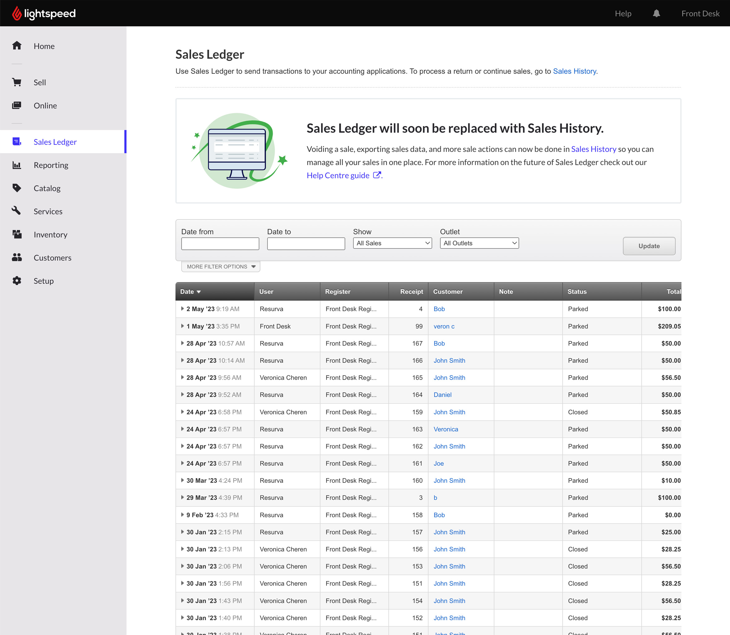 Appointments in Resurva become parked orders in Lightspeed’s register.